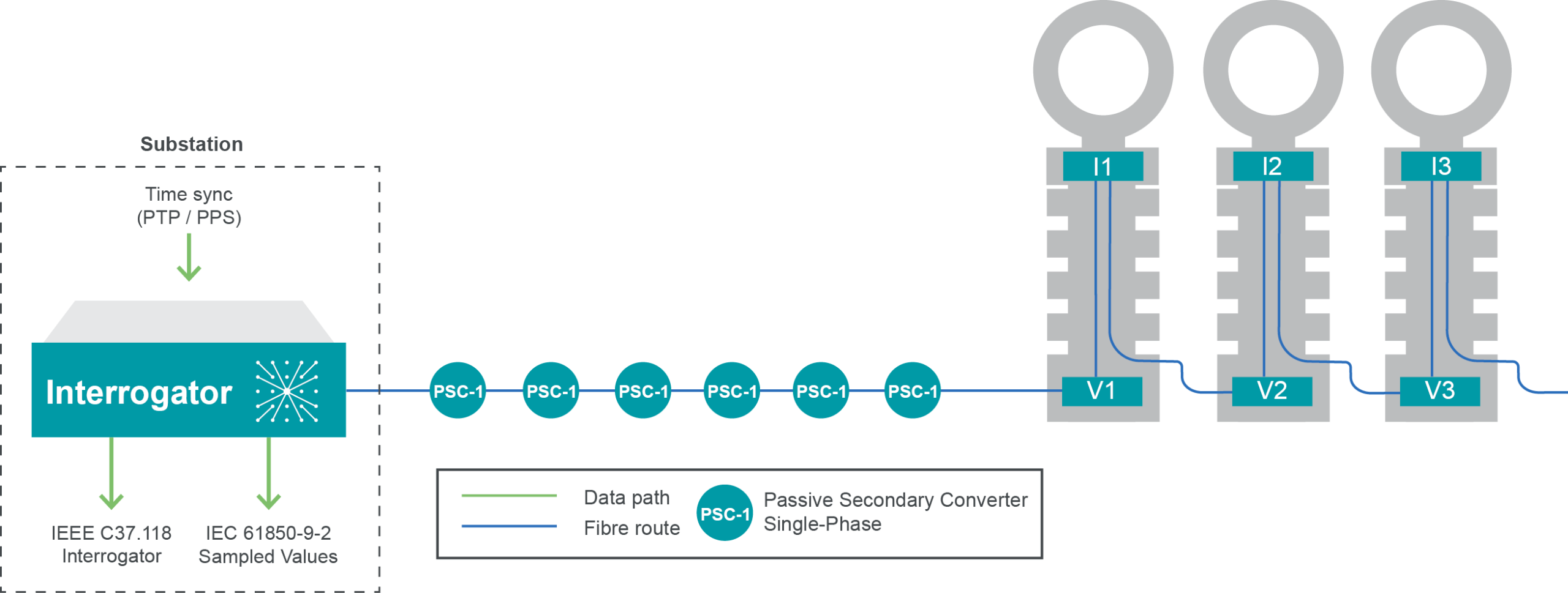 System operators use synchrophasors (derivable from synchronised waveform data) to enhance the visibility and resilience of modern power systems as well as real-time and post-event analysis and network model evaluation. However, there is significant cost and complexity in networking large numbers of time-synchronised Phasor Measurement Units (PMUs) reliably from wide locations. By using distributed current and voltage sensing, our Distributed Electrical Sensing (DES) technology has the potential to deliver synchrophasors at a fraction of the cost of conventional solutions, leading to capex savings of approximately 80% per measurement location, compared to conventional infrastructure. This is achieved primarily by eliminating the need for local Phasor Data Concentrators, synchronised clocks, telecommunications infrastructure, construction of buildings, power supplies, and dedicated merging units at each measurement location. It readily supports the IEEE C37.118.2 output format for integration with other systems.